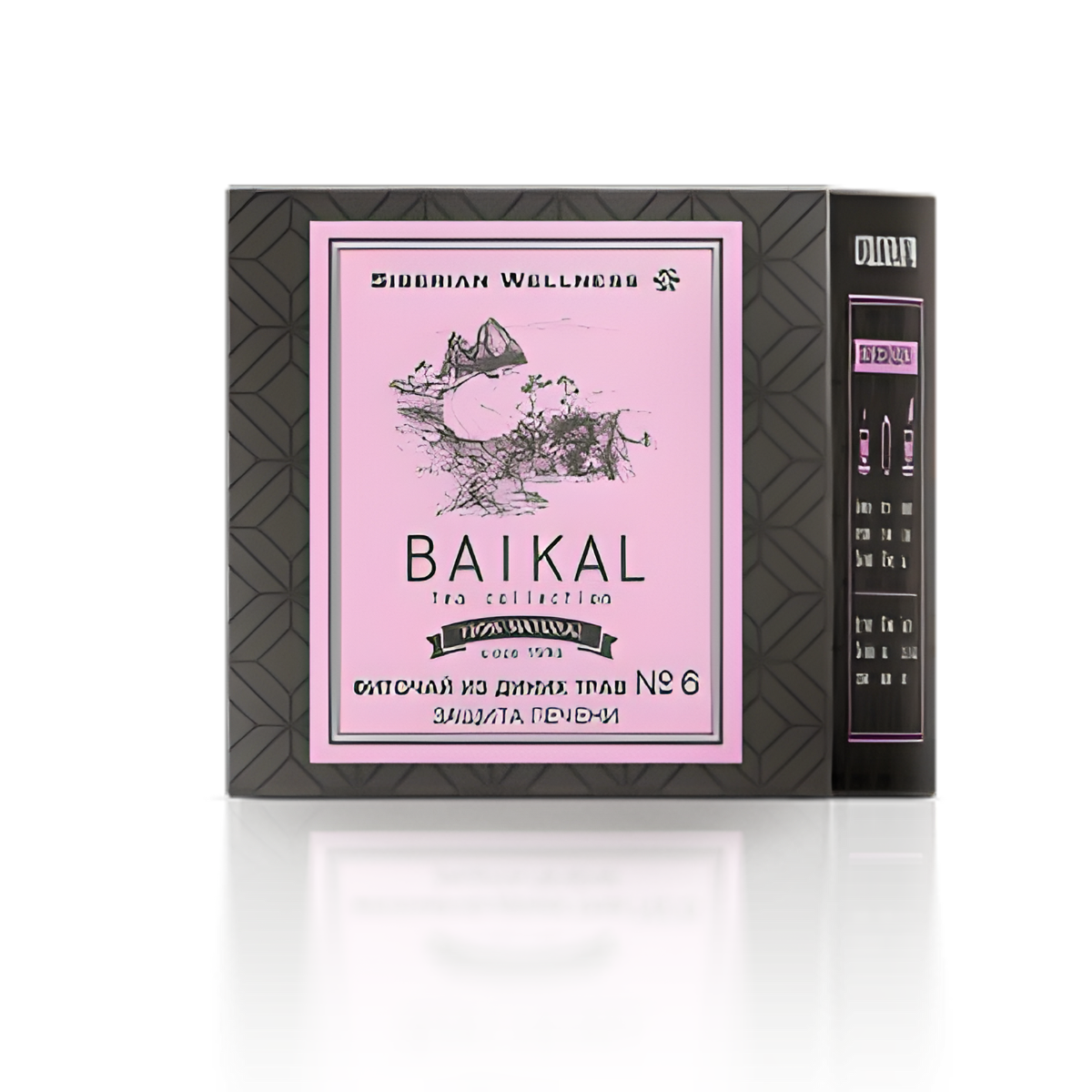 Trà thảo mộc Baikal tea collection. Herbal tea №6 với sự kết hợp của lá bạc hà âu, hoa cúc vàng, rau đắng, cây ban âu và râu ngô, hỗ trợ thanh nhiệt giải độc, hỗ trợ tăng cường chức năng giải độc của gan.
