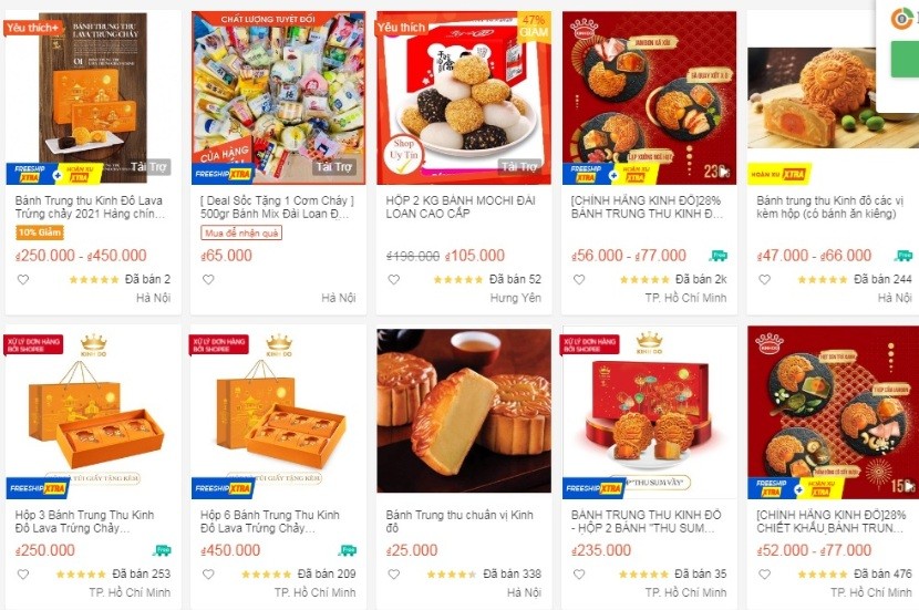 Ở nhóm sản phẩm bán chạy, các thương hiệu như Tiệm Xuân Tùng và Lâm Thủy chiếm ưu thế nhờ mức giá phổ thông với loại bánh trung thu nướng, dao động 35.000-55.000 đồng/bánh. Các combo bánh mochi trứng muối giá 100.000-130.000 đồng cũng góp mặt trong top sản phẩm được người mua ưa chuộng.