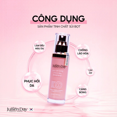 Tinh chất tạo bọt siêu phục hồi căng bóng da Jullien Day đến từ Hàn Quốc là sản phẩm không chỉ giúp làm trắng da mà còn là có khả năng cải thiện nếp nhăn, trẻ hóa tái tạo làn da. Chỉ sau 2-3 giây khi thoa tinh chất lên da, bọt mịn nổi lên sẽ được hấp thụ nhanh chóng, biến kết cấu da xỉn màu và thô ráp thành kết cấu da mịn mượt, căng bóng.