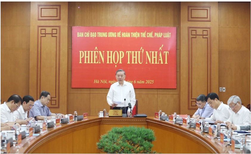Sáng 5.6, tại trụ sở Trung ương Đảng, Tổng Bí thư Tô Lâm chủ trì phiên họp thứ nhất Ban Chỉ đạo Trung ương về hoàn thiện thể chế, pháp luật (Ban Chỉ đạo).