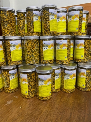 Sản phẩm được sấy lạnh hiện đại, giữ nguyên màu vàng tự nhiên, mùi thơm thanh nhẹ và vị ngọt dịu vốn có của hoa cúc. Khi pha uống ấm, trà cho màu nước vàng trong, hương thơm lan tỏa, mang lại cảm giác thư giãn và dễ chịu.