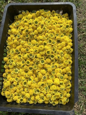 Trà Hoa Cúc được tuyển chọn từ những bông cúc vàng trồng trên ruộng bậc thang tại xã Bắc Quang – nơi có độ ẩm cao, khí hậu mát và thổ nhưỡng màu mỡ, giúp cây cúc phát triển khỏe, bông to – cánh dày – thơm rõ rệt hơn so với cúc trồng miền xuôi.