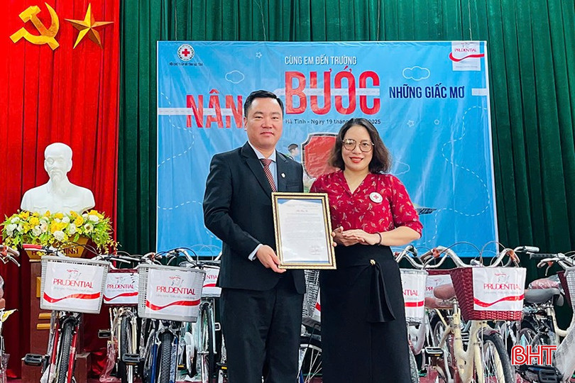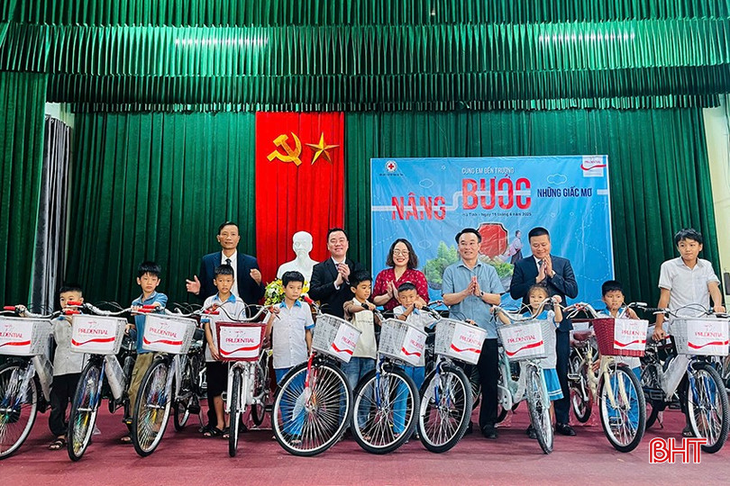 33 chiếc xe đạp trị giá 50 triệu đồng được trao tặng góp phần chia sẻ khó khăn, tiếp sức cho trẻ em nghèo huyện Kỳ Anh (Hà Tĩnh) trong quá trình học tập, rèn luyện.