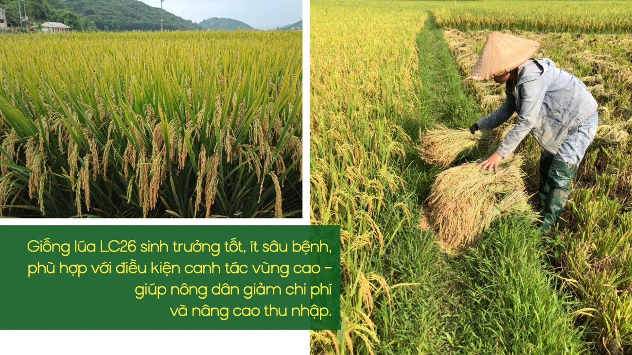 Việc chọn tạo thành công giống lúa LC26 không chỉ đánh dấu bước tiến trong lĩnh vực nghiên cứu giống cây trồng mà còn mở ra hướng phát triển kinh tế hiệu quả, bền vững cho nông dân miền núi phía Bắc. So với các giống lúa truyền thống, sản xuất giống LC26 cho hiệu quả kinh tế cao hơn từ 35% đến 40% do năng suất cao, ít sâu bệnh, giảm chi phí thuốc bảo vệ thực vật, đồng thời giá bán gạo cao hơn nhờ giá trị dinh dưỡng vượt trội.