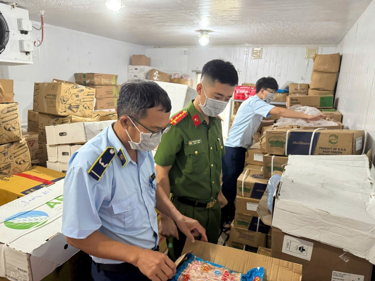 Cụ thể, công an tỉnh đã xử lý 2 vụ, thu giữ trên 5.000 sản phẩm gồm gần 100 loại thuốc, thực phẩm chức năng không hóa đơn, 117,5 kg thịt động vật không rõ nguồn gốc. Phối hợp với Đội Quản lý thị trường số 6, công an kiểm tra và phát hiện hơn 3,9 tấn thực phẩm đông lạnh không có giấy tờ hợp lệ tại Công ty TNHH XNK Thịnh Phát Food. Lực lượng Bộ đội Biên phòng tỉnh cùng Vùng Cảnh sát biển 1 cũng bắt giữ 1 vụ vận chuyển 3 tấn mực khô không rõ nguồn gốc.