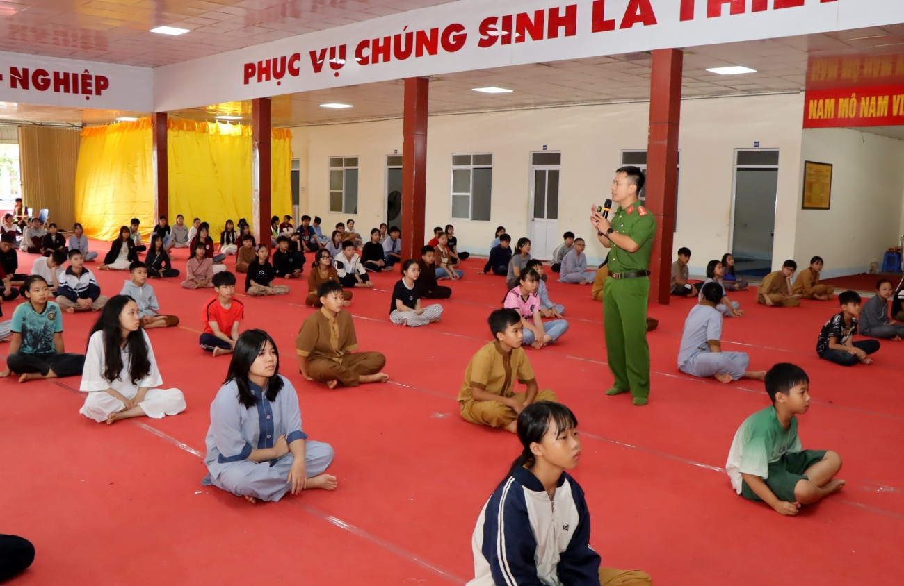 Hơn 200 em tham gia khóa tu mùa hè năm 2025 và sư thầy tại Chùa Linh Sơn được nghe cán bộ Phòng Cảnh sát PCCC&CNCH thông tin nhanh về các vụ cháy lớn gây thiệt hại hậu quả nghiêm trọng về người, tài sản xảy ra trên cả nước trong những năm qua; tác dụng, cách sử dụng bình chữa cháy bằng bột để xử lý nhanh các tình huống cháy xảy ra, đảm bảo an toàn cho bản thân và mọi người.
