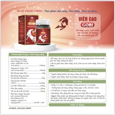 – Cao khô xương ngựa bạch Mông Cổ (chứa canxi, phốt pho và các acid amin): 100mg