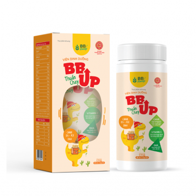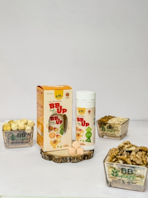 Viên dinh dưỡng BB UP với thành phần đạm thực vật từ các loại hạt (Bắp, Macca, Óc chó, Hạnh nhân, Đậu đỏ, Yến mạch), bổ sung Aquamin F (Chiết xuất Tảo biển đỏ), D3, K2, Inulin, DHA cùng các vitamin và khoáng chất. Viên dinh dưỡng BB UP sử dụng cho trẻ em từ 3 tuổi trở lên.