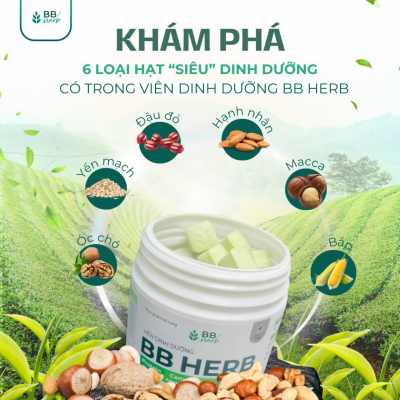Viên sữa ăn liền BB HERB với thành phần thuần chay, 100% đạm thực vật từ các loại hạt cao cấp (Bắp, Macca, Óc chó, Gạo lức, Đậu đỏ, Yến mạch), bổ sung hoạt chất MK7, Canxi hữu cơ, D3 cùng 10 vitamin và 72 khoáng chất thiết yếu, là lựa chọn hàng đầu giúp bổ sung dinh dưỡng cân đối, đủ chất và lượng cho cả gia đình.