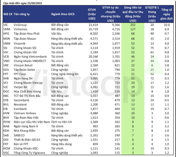 Khoảng 30 cổ phiếu Việt Nam sẽ được đưa bổ sung vào danh mục đầu tư của các quỹ chỉ số. Dòng vốn từ các quỹ thụ động có thể đạt ít nhất 1 tỷ USD trong quá trình thực hiện.