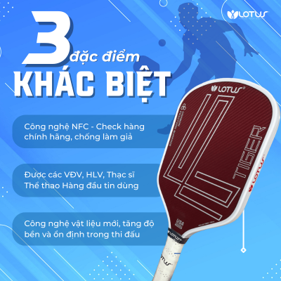 Được thiết kế hoàn hảo, dòng vợt Pickleball Lotus Tiger mang đến sự kết hợp độc đáo giữa khả năng hấp thụ tác động, tiếp xúc chính xác và trượt mượt mà, đảm bảo mọi cú đánh đều vừa ý. Xử lý dễ dàng những cú đánh mạnh với khả năng hấp thụ sốc vượt trội và tận hưởng độ lưu loát và cảm giác đặc biệt, giúp mọi cú đánh trở nên mượt mà và liền mạch.