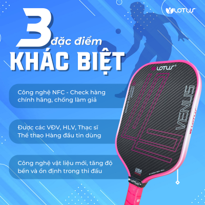 Được thiết kế hoàn hảo, dòng vợt Pickleball Lotus Venus mang đến sự kết hợp độc đáo giữa khả năng hấp thụ tác động, tiếp xúc chính xác và trượt mượt mà, đảm bảo mọi cú đánh đều vừa ý. Xử lý dễ dàng những cú đánh mạnh với khả năng hấp thụ sốc vượt trội và tận hưởng độ lưu loát và cảm giác đặc biệt, giúp mọi cú đánh trở nên mượt mà và liền mạch.