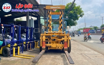 KOMATSU FD120-8 với động cơ diesel mạnh mẽ, tải trọng 12 tấn, và thiết kế bền bỉ phù hợp cho vận hành liên tục trong điều kiện khắc nghiệt của cảng biển Việt Nam.