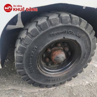 UniCarriers FD15T14 sử dụng bánh đặc cho cả bánh trước và bánh sau, với kích thước bánh trước là bánh đặc 6.50-10 và bánh sau là bánh đặc 5.00-8. Loại bánh này mang lại độ bền bỉ cao, ít bị xì hơi hay thủng, phù hợp cho việc vận hành trong các môi trường kho bãi, nhà xưởng hay khu công nghiệp với bề mặt sàn cứng hoặc có vật nhọn.