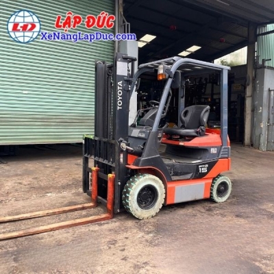 Xe nâng điện ngồi 1.5 tấn TOYOTA 8FB15 là một dòng xe nâng điện ngồi lái thuộc series 8FB của Toyota, được thiết kế để nâng hạ và vận chuyển hàng hóa với tải trọng tối đa 1.5 tấn. Sử dụng động cơ điện AC và bình ắc quy 48V-625Ah, xe có khả năng nâng cao lên đến 6000mm (6m) với cột nâng 3 tầng. Sản phẩm được sản xuất tại Nhật Bản hoặc Trung Quốc (dây chuyền Toyota Kunshan), thường nhập khẩu dưới dạng mới 100% hoặc đã qua sử dụng (sản xuất từ 2016-2023), với chất lượng từ 85-95% sau bảo dưỡng. Đây là lựa chọn phổ biến cho kho bãi, nhà máy, và cảng biển nhờ tính linh hoạt và độ bền cao.