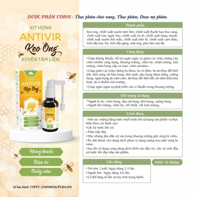 Xịt họng Antivir Keo ong xuyên tâm liên