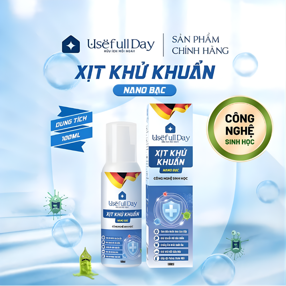 Xịt Khử Khuẩn Nano Bạc Usefull Day 100ml – Khử Mùi, Diệt Khuẩn 99,9%, Xả Vải Khô Công Nghệ Sinh Học