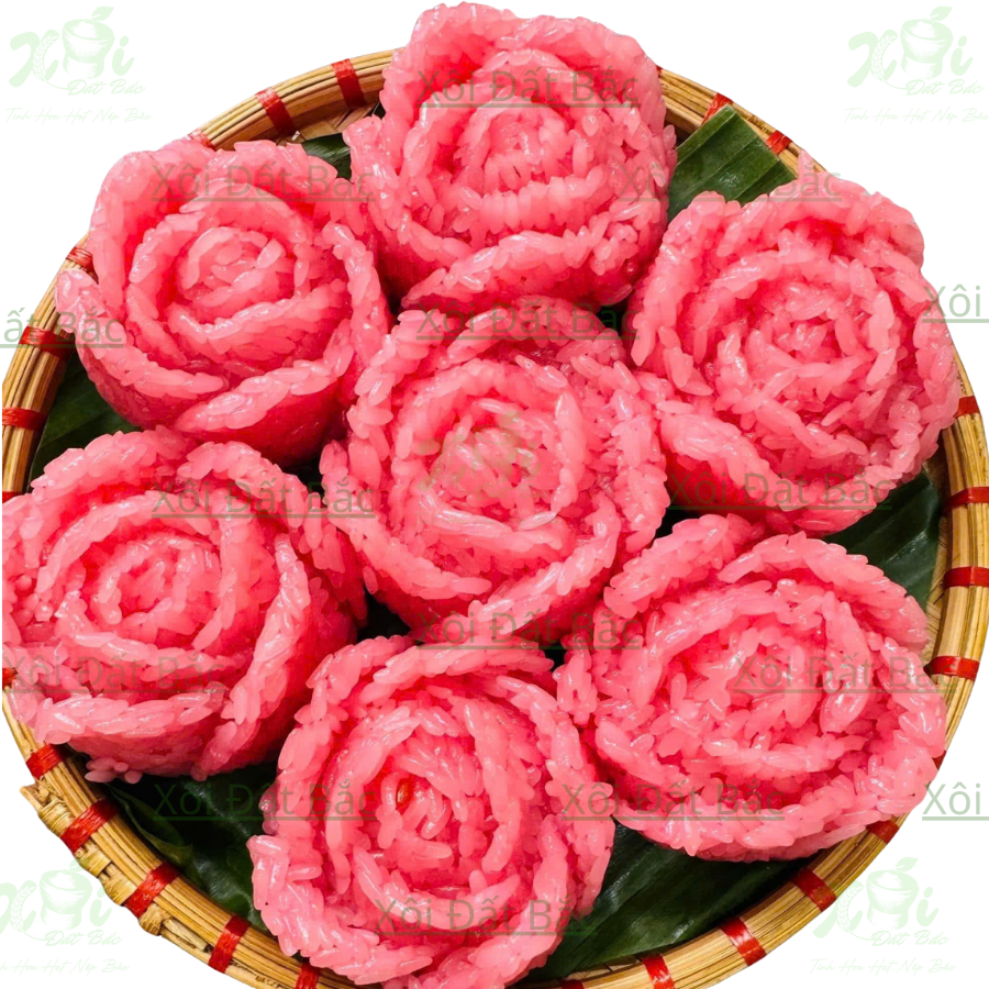 Xôi Màu Hồng từ bột xương rồng của Xôi Đất Bắc là một trong những sắc xôi tự nhiên độc đáo, mang vẻ đẹp dịu dàng nhưng vô cùng nổi bật. màu hồng thanh thuần được chiết xuất từ bột xương rồng thiên nhiên, hòa quyện cùng nếp cái hoa vàng dẻo thơm, tạo ra món xôi vừa đẹp mắt, vừa đảm bảo tuyệt đối an toàn cho sức khỏe.