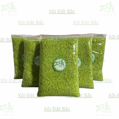 Xôi xanh cốm của Xôi Đất Bắc là sản phẩm xôi đã đồ lần 1, được chế biến tỉ mỉ, thủ công từ những hạt nếp cái hoa vàng mềm dẻo, kết hợp với màu xanh cốm tự nhiên chiết xuất từ hoa đậu biếc và bột nghệ. Đây là sự kết hợp hài hòa giữa ẩm thực truyền thống và nghệ thuật tạo màu tự nhiên, mang đến món xôi đẹp mắt, thơm ngon, giàu dinh dưỡng.