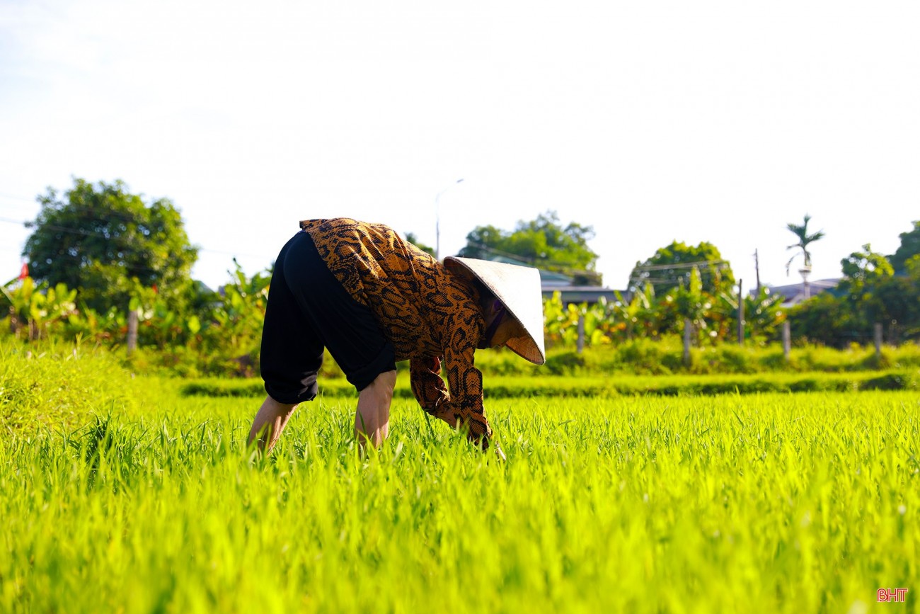 Xuống giống lần 2, nông dân TX Kỳ Anh chăm sóc kỹ lúa hè thu