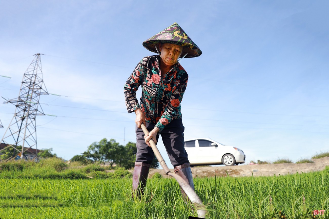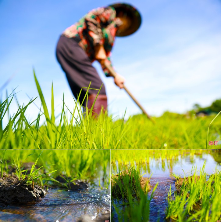 Tranh thủ thời tiết nắng ráo, những ngày này bà con nông dân các phường, xã ở thị xã Kỳ Anh đã khẩn trương bám đồng để tỉa dặm, làm cỏ, tháo nước, bón thúc đợt 1.